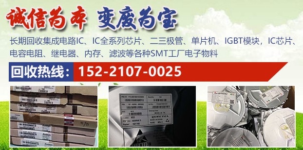 上海滿芯再生資源回收有限公司專業(yè)回收ADI系列芯片、內(nèi)存芯片、三星K9系列內(nèi)存、TIST、MTK、ALTERA、XILINX、ATMEL、PIC、STC、STM32F系列單片機(jī)等一切電子料;長期收購電子元器件、回收ic芯片、電容電阻、二三級(jí)管、繼電器、內(nèi)存、濾波、晶振等各種SMT工廠電子物料;長期回收集成電路IC、IC全系列芯片、二三極管、單片機(jī)、IGBT模塊、內(nèi)存FLASH、DDR、MC